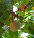 female flowers appearing little different, borne in congested cymes (in ours). Calyx 5-lobed. Petals 5, free. Filaments 10, united in the lower half with anthers inserted between a pair of triangular appendages. Ovary 2-3(-4)-locular. Stigma capitate. Fruit a loculicidal capsule. Seeds large, almost completely covered (in ours) by a bright red aril. Derivation of name: from tricheilos, 3-lipped or tricha, in threes, referring to the 3-locular fruit Worldwide: 84 species in the tropics of America and Africa Zimbabwe: 2 cultivated taxa. |