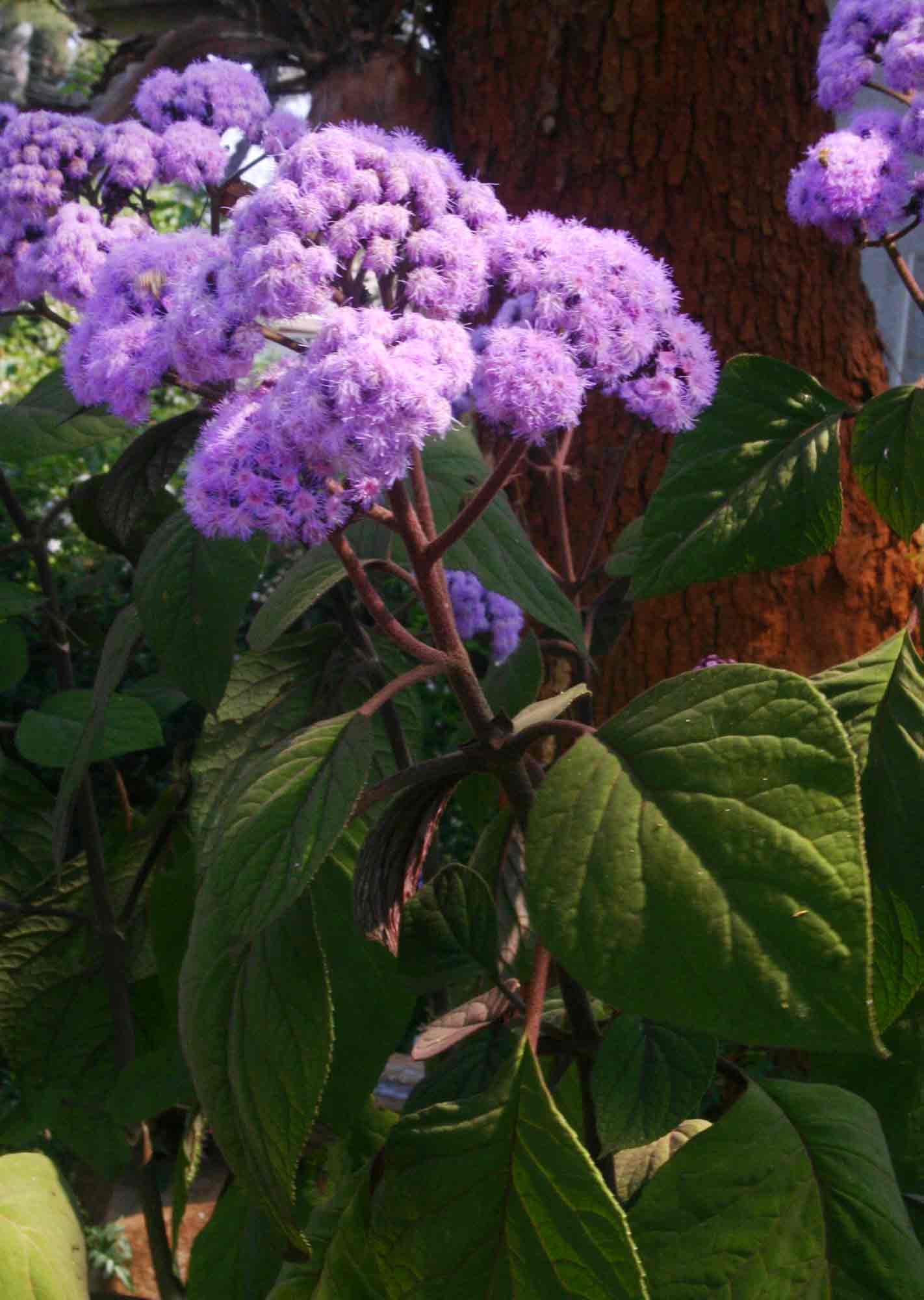 Shrub c. 2 m tall. Leaves opposite. Flowers purple, somewhat resembling a darker version of Ageratum houstonianum. |