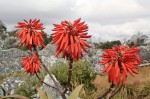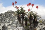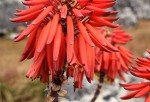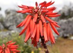 | Description: | Large succulent shrub-like plant, single-stemmed or branching near the base, 2-5 m tall. Leaves in a dense rosette at the apices of the branches, up to c. 50 cm long, greyish-green,without spots but often tinged pinkish-red, particularly along the toothed margins. Inflorescences 1-2 from each rosette, erect, branched, up to 60 cm tall, each branch terminating in a dense subcapitate head, 10-14 cm long. Flowers bright orange-red, 35-45 mm long. |