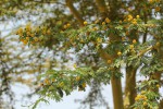| Description: | Medium-sized deciduous tree. Bark very distinctive, smooth, greenish-yellow or yellow, powdery. Thorns straight, up to 7 cm, white, in pairs at the nodes. Leaves often clustered on short lateral shoots, 4-6 pairs of pinnae. Leaflets in 10-17 pairs per pinna, small, pale yellow-green. Flowers in axillary clusters of pale yellow spherical heads. Pods straight, papery with a wavy margin, indehiscent. |