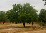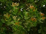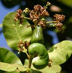 | Description: | Tree, rarely a shrub. Leaves spirally arranged, shortly petiolate, broadly oblong-obovate, up to 18 cm long, leathery shiny green above, paler below, reddish when young; midrib prominent below; lateral veins 9-17 pairs. Flowers in branched terminal heads, yellowish-white, tinged pale reddish. Fruit kidney-shaped, greenish yellow, hanging from a very thickened, fleshy pedicel. |