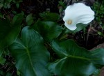 | Description: | Robust evergreen plant to 60 cm high. Spathe ivory-white broad and widely spreading backwards, without a dark purple area at the base of the spathe. Spadix usually bright yellow. Clavate-spathulate staminodes scattered among the female flowers. |