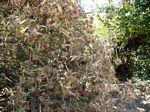 Shrub or small tree. Culms woody. Inflorescence of dense spherical clusters of spikelets, at the tips of leafy branchlets, the clusters sometimes confluent. Spikelets subtended by several short papery bracts, 1-2-flowered, 1(-2) upper florets bisexual, the lower barren; glumes round on the back, 17-30-nerved, 2-4