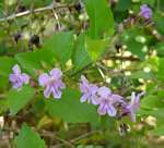 Erect, or ± climbing, unarmed or spiny shrubs or small trees. Leaves opposite or whorled, simple. Flowers in terminal or axillary racemes or panicles; bracts small. Calyx 5-toothed, persistent. Corolla zygomorphic; limb 2-lipped with 5 unequal lobes. Stamens 4-5. Ovary spherical, 8-10-locular. Fruit fleshy with 4-5 2-seeded pyrenes, tightly enclosed by the persistent calyx. Derivation of name: Duranta: named for Castor Durantes, physician and botanist in Rome, who died in c. 1590 Worldwide: 20-35 species, tropical American; one widely cultivated in the tropics and becoming naturalised Zimbabwe: 1 taxon. |