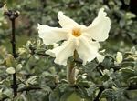 Erect spiny shrub or small tree. Leaves simple, opposite or fascicled, greyish-woolly. Calyx tubular, splitting laterally, with 5(-6) lobes. Corolla campanulate, slightly 2-lipped, 5(-7)-lipped, white or pinkish, with a long (4 - 8 cm) tube. Capsule woody, with warty valves. Seeds winged, papery. Worldwide: 1 species in tropical and South Africa Zimbabwe: 1 taxon. |