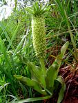Bulbous, perennial herbs. Leaves several to many, in a basal rosette, smooth, shiny, occasionally with purple spots or stripes. Inflorescence a raceme of many flowers, topped with a coma of green leafy sterile bracts. Fertile bracts smaller than sterile. Flowers greenish (in ours). Perianth segments fused at base; lobes spreading, persistent. Stamens 6; filaments fused below to form a shallow cup. Ovules many. Fruit a 3-angled capsule. Seeds black or brown. Worldwide: 10 species in tropical and South Africa Zimbabwe: 2 taxa. |