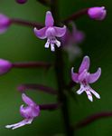 raceme. Flowers numerous, white, pink or lilac, often with darker spots. Sepals briefly united at the base to column and the lip. Petals erect. Lip 3-5-lobed, with or without a spur. Column very short and broad. Pollinia 2, with short caudicles and circular viscidia. Staminodes present. Stigmas ±