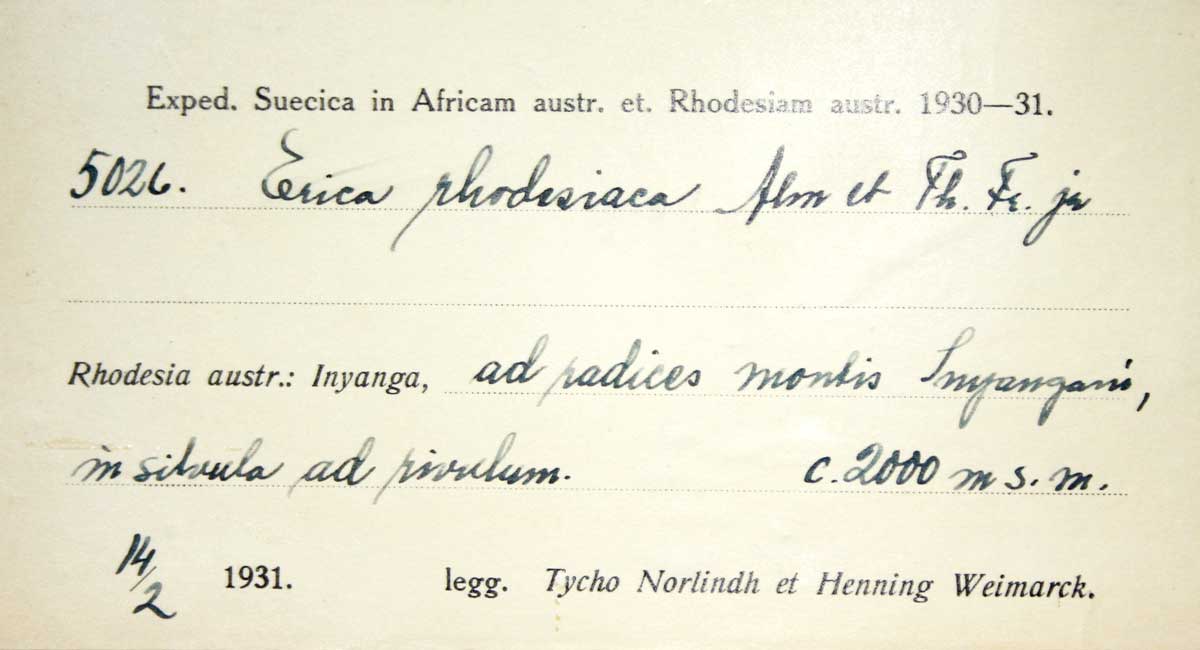| Collector(s): | T Norlindh AH Weimarck 5026 |