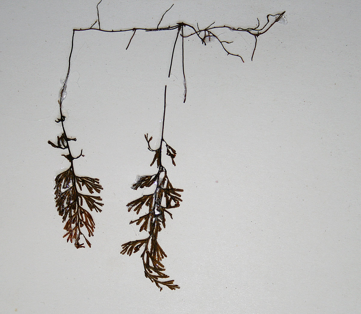On mossy boulders with Elaphoglossum spathulatum (Bory) Moore, streambed in shade |