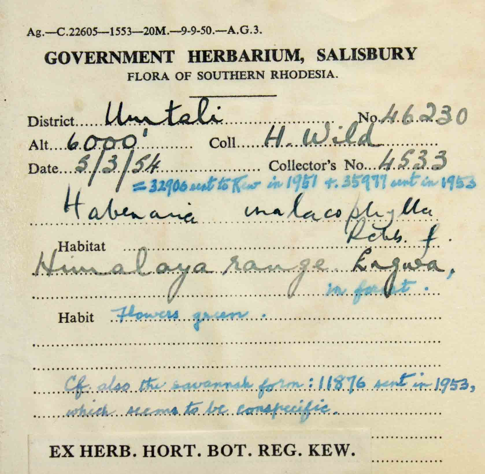 | Collector(s): | H Wild 4533 |