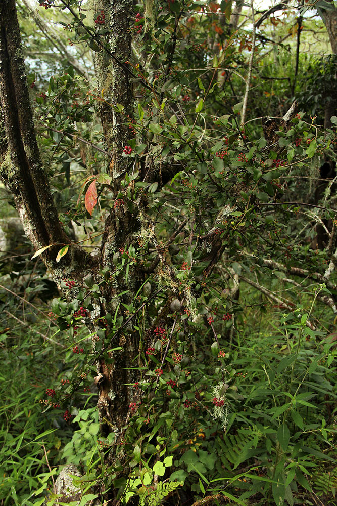 | Image notes: | Parasitic shrub growing on Englerophyton magalismontanum; inflorescences in axillary and terminal racemces; fruit ellipsoid wine red. Several specimens seen. |