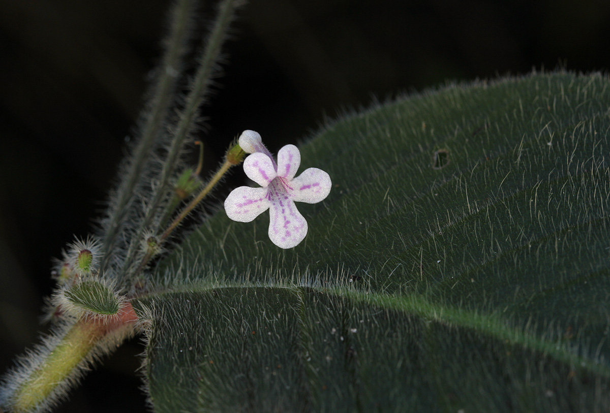 | Notes: | BR specimen Small herb with one large, very hairy leaf and sometimes several small ones; inflorescence arising from the base of the larger leaf, up to c. 8 cm high, erect, branched, dark purple and densely hairy; flowers smallish, white with purple-red stripes and spots. Generally common in the area |
