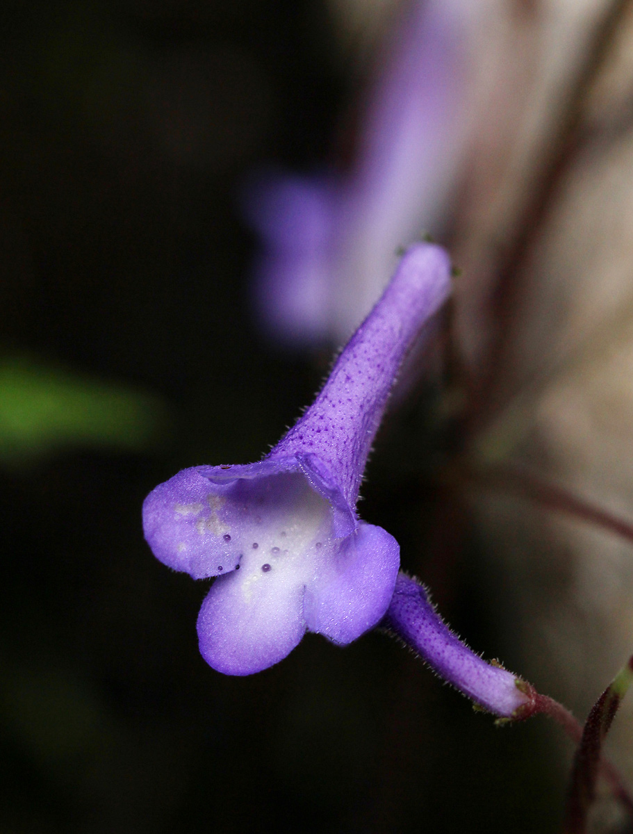 | Image notes: | Herb with one elongeted pendent leaf, inflorescence arising from the base of the leaf, 15-20 cm high, branched, laxly many-flowered; flowers purple-blue, paler in the corolla throat; glandular hairy on the outside. Several specimens seen at collection site; only one flowering |