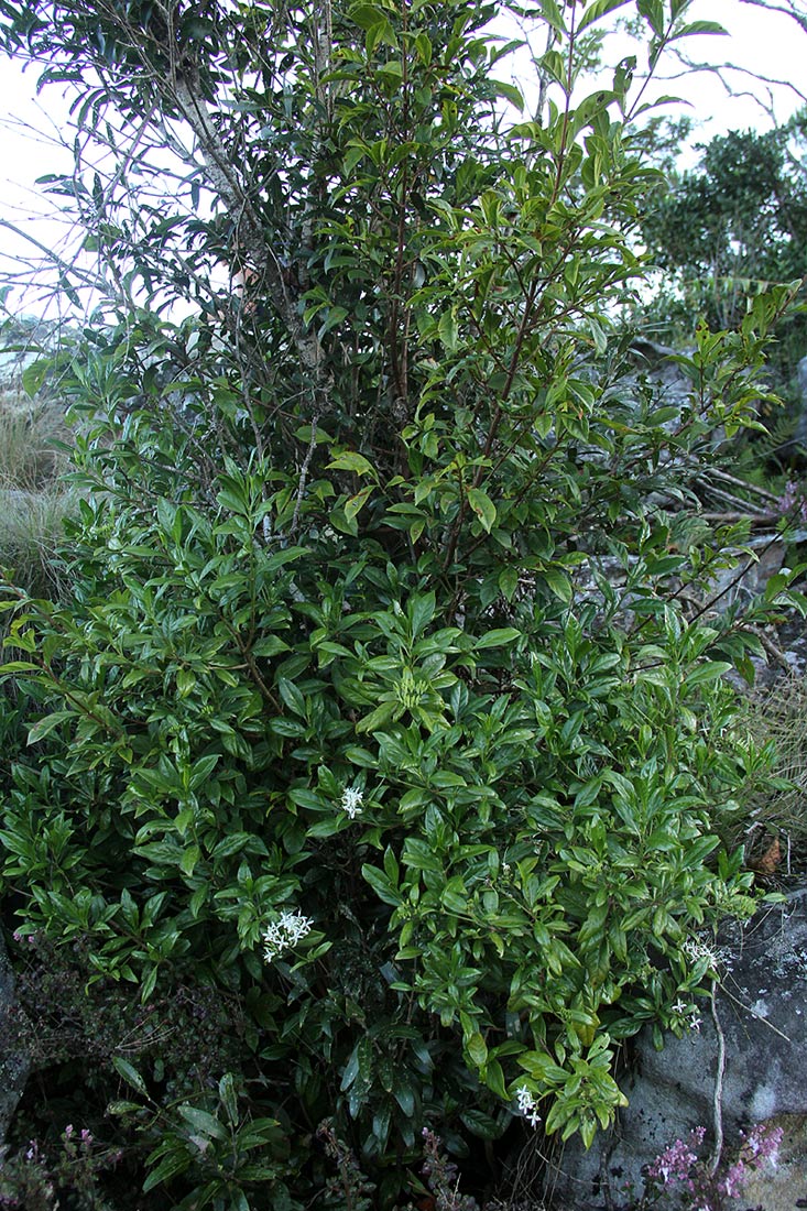 | Image notes: | Small tree, c. 2.5 m tall; Leaves with large bacterial nodules; flowers in terminal heads, white, 4-merous. One specimen seen |