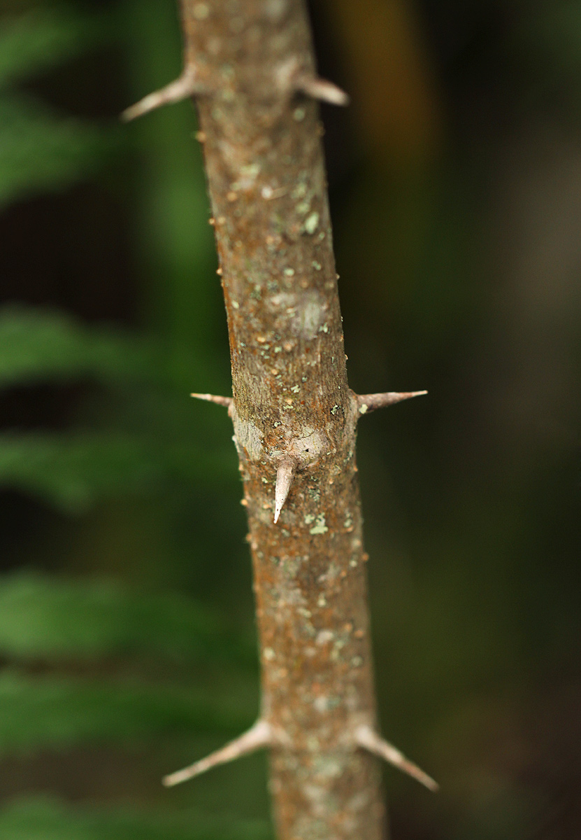 | Notes: | Small, slender tree, c. 2.5 m tall; stem with straight spines in whorls of 3; leaves dark green, leathery; fruit irregularly 2-lobed, mottled green. Only one specimen seen |