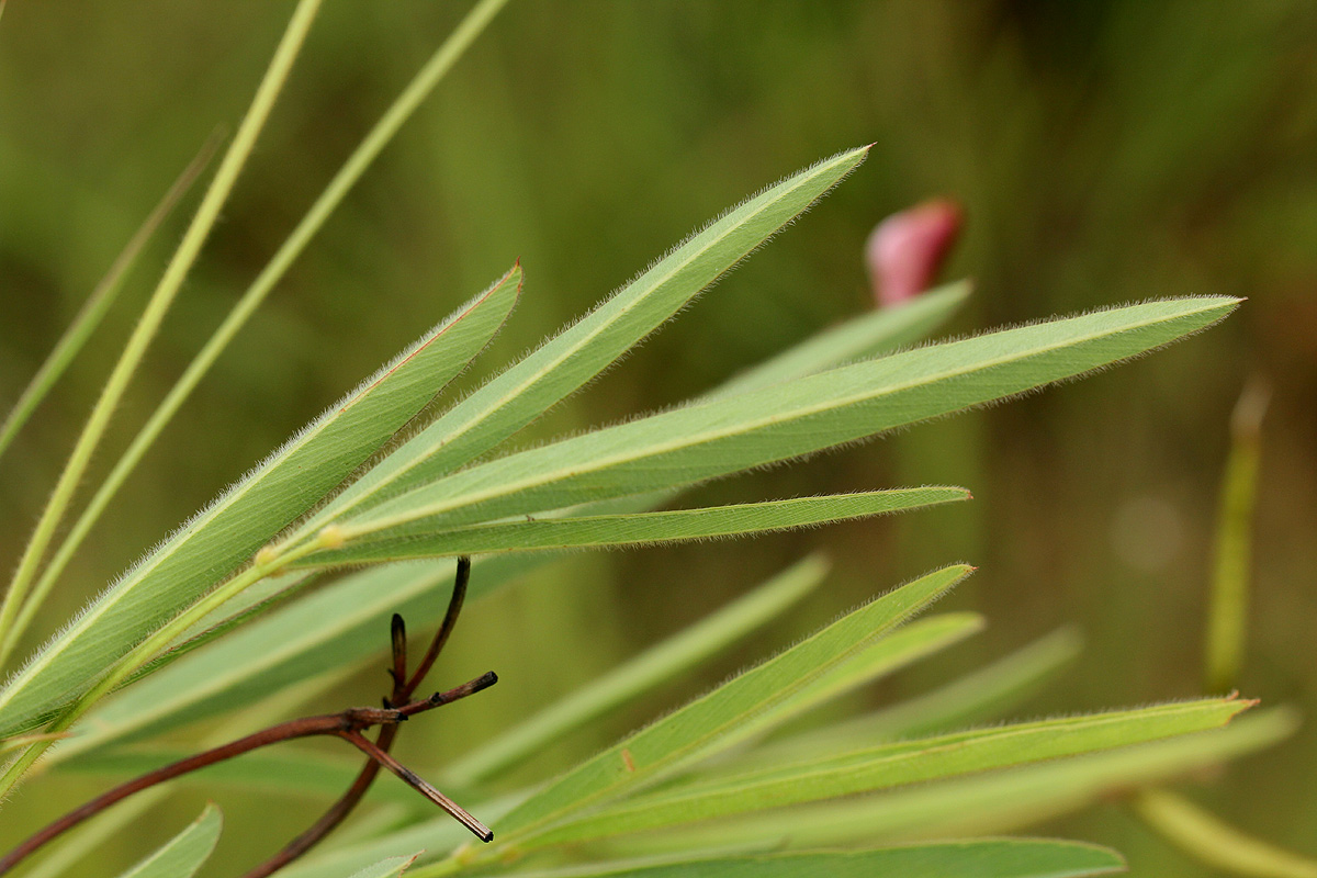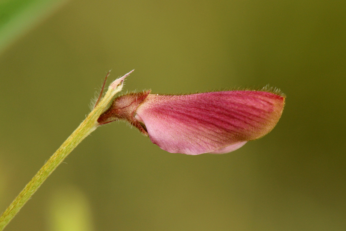 | Image notes: | Herb about 20 cm tall. Stem covered with small brownish hairs. Leaves singular but sometimes trifoliate with small brown hairs on underside. Flowers pink. Young pods developing, about 10 cm long covered in short brownish hairs. Long tuberous root. |