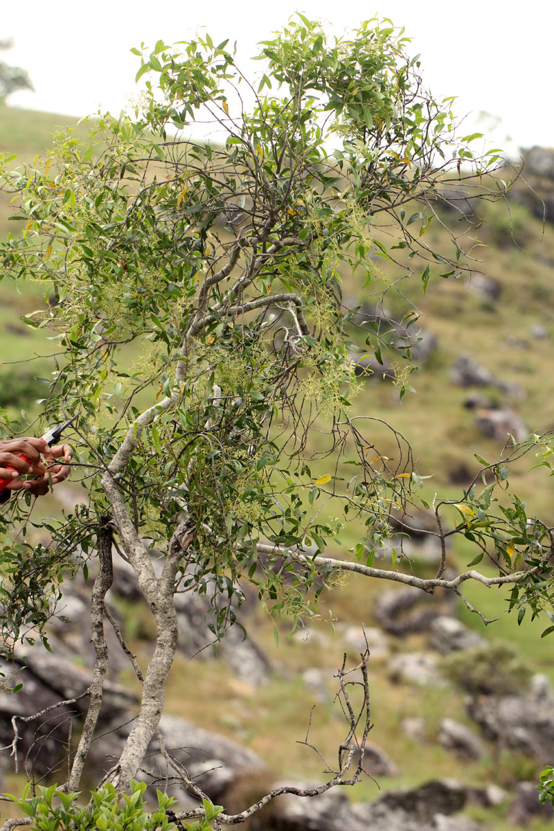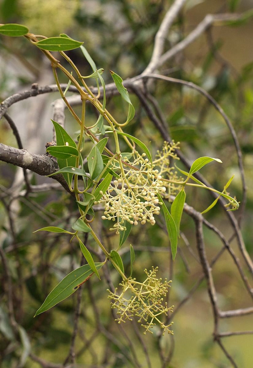 | Image notes: | Small tree to 4m. Branches and leaves lax, leaves leathery. Terminal inflorescence of small white flowers. |