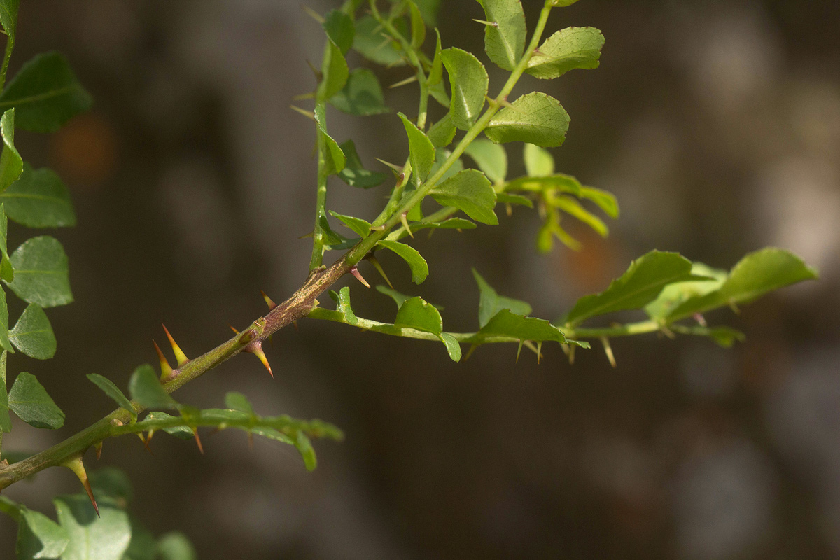 Small tree with spines on branches and leaves. Gland dots around the margin. |