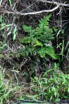 Rhizome short, erect, up to 10 mm in diameter, rhizome scales dark-brown, entire, up to 7 mm in length, margins pale. Fronds tufted, erect, arching, herbaceous or thinly coriaceous, up to 40 cm long. Stipe black to castaneous, shiny, with scattered brown scales up to 7 mm long. Lamina lanceolate to narrowly ovate in outline, up to 390 × 180 mm, 2 to 3-pinnatifid; pinnae glabrous, dark matt green above, covered with a white or sometimes pale, yellow powder beneath. Lower pinnae larger than the ones above and more or less basiscopically developed; upper pinnae oblong, decurrent; ultimate lobes oblong, rounded, minutely toothed. Rhachis, costae, costules shiny black and glabrous. Sori small, marginal, in discrete or continuous clusters; indusium small, semi-transparent, variously lacerate. |