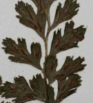 Rhizome erect, up to 9 mm thick; scales dark brown, up to 3 mm long, margins entire. Fronds not proliferous, tufted. Stipe up to 13 cm, set with a few scattered hair-like scales especially towards the base, matt brown. Lamina 5-23 cm × 1.5-5 cm, 2-pinnatifid to 2-pinnate, ovate-lanceolate in outline, lower 1-3 pairs of pinnae somewhat reduced, not decrescent. Pinnae venation pinnate, pinnatifid with the basal acroscopic lobe often free, outer margins sharply toothed, glabrous above, subglabrous below. Rhachis glabrous, narrowly winged. Sori 2-5 per lobe, linear to oval, 2-4mm long, indusium erose. |