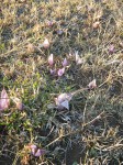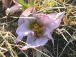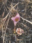 Perennial herb, growing from a conical to subglobose corm, set 10-20 cm below ground. The plants have virtually no stem above ground. Leaves 2-3, linear with a broadened ovate base, 10-30 cm long but usually withered and broken. Bracks several, ovate, 6-13 cm long, showy, white or purplish-pink striped with 15-50 veins. Inflorescence a congested head of up to 10 flowers, held inside the bracts. Flowers mauve-pink to purplish. |
