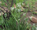 Perennial herb up to 35 cm high, growing from a bulb. Leaves linear. Flowers white with a band of dark olive-green to grey-green on the tepals. Flowers often not fully opening. |