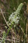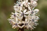 Perennial herb, up to 55 cm high, growing from a bulb up to 5 cm in diameter. Leaves linear to lanceolate, up to 35 cm long, mostly hairles, sometimes pubescent or with ciliate hairs. Flowering stem pubescent in the upper part. Inflorescence a densely flowered raceme, 5–17 cm long. Pedicels 5–9 mm long, spreading, pubescent; bracts narrowly lanceolate, up to 8 mm. Perianth segments oblong, 3–5 mm long, spreading to reflexed, white or greenish-white, rarely pale purple or blue. Ovary, filaments or anthers often bluish or dark-coloured. Capsule 3–4 mm long, often on pedicels longer than 9 mm. |