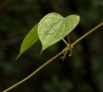 Twining climber with annual, right-twining, unarmed stems, growing from a perennial fleshy tuber. Leaves usually opposite, 10-20 cm long, heart-shaped, covered in stellate hairs, more densely so below. Flowers in pendent, axillary spikes, unisexual. Bulbils often present, particularly at flowering time, axillary, c. 1 cm in diameter, globose to ovoid, tuberculate, dark brown. Fruit 4-winged capsule, up to 2.4 × 3.9 cm, papery when dry. |
