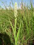 Terrestrial herb, up to 1m tall. Flowers many, densely packed in conical spikes, which appear white. Flowers white with the median sepal and petals sometimes yellow. Bracts white at the margins near apex. |