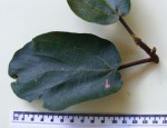 Tree up to 15 m tall, terrestrial. Leaves ovate or elliptic, chartaceous, brittle, apex rounded to obtuse, base cordate, upper surface rough to the touch; figs on leafless branchlets on the main trunk, or single or paired in the leaf axils. |