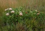 Dwarf shrub, up to 60 cm, dying back each year after winter frosts or fires. Heads (6)8–12 cm diameter. Bracts silvery velvety when young but often becoming hairless over most of the surface. Flowers white. Perianth claw with long whitish hairs inside and occasionally outside. |