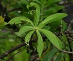 Usually a small tree. Leaves oblong to elliptic, often distinctly sickle-shaped, hairless except for a few hairs near the base of the leafblade, light green to blue-green with the midrib yellowish and prominent. Flower heads variable, densely hairy, white to pink-tinged, strongly scented; involucral bracts pale green with silvery hairs, with or without a rusty margin. Fruit a hairy nutlet. |