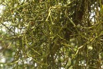 Leafless, parasitic, pendulous shrub, 1-3 mm long. Branches yellowish-green with distinctly flattened and strongly ribbed internodes. Flowers unisexual on different plants; male flowers in 2-3-flowered clusters; female flowers solitary; bracteal cups sessile in both sexes. Berries sessile, 6-7 mm long, tuberculate when young but smooth and orange when mature. |