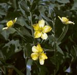 Erect or sub-erect perennial herb, up to 40 cm tall. Leaves and stems somewhat fleshy. Leaves oblong to broadly (ob)ovate,up to c. 4 × 2.5 cm. Flowers axillary, mostly solitary, rarely in clusters of 2-3, golden-yellow, opening in the afternoon and fading by nightfall. Fruit a subspherical capsule. Seeds shiny black with a white hilum, 1.5-2 mm in diameter, with a verrucose surface (visible with a lens). |