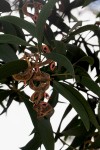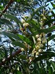 Small to large tree up to 20 m. It is easily distinguished from related "wattles" (A. dealbata and A. mearnsii) as it only has bi-pinnate leaves in the seedling stage. The simple leaves of larger specimens are in fact swollen and flattened petioles called phyllodes. |