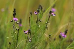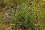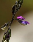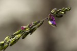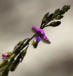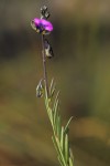 Small shrubby herb, sometimes annual, up to 1.5 m high but mostly much shorter. Stems many, slender, minutely pupescent, slightly winged. Leaves linear, 10-30 mm long, sparsely and minutely hairy, usually somewhat rough above and at the margins, rounded but mucronate at the apex. Inflorescences in elongated terminal racemes up to 20 cm long. Flowers pink to violet-purple; wing sepals greenish with distinct dark veining; crest on the keel distinct, c. 1.5 mm long. |