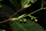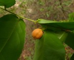 Straggling shrub or small tree. Leaves alternate, elliptic to lanceolate, tapering or attenuate, up to 11 cm long, bright green, sometimes asymmetric at the base; margin with gland-tipped teeth. Flowers unisexual on different trees, in small axillary clusters or solitary, yellowish-green, honey-scented. Fruits sub-spherical, fleshy, 1.5-2 cm, bright orange-red when ripe. |