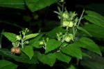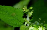 Twining or scrambling perennial herb. Stems up to 3 m long, covered with a mixture of short soft hairs, longer stiff hairs and stinging bristles. Leaves elliptic-ovate to oblong-lanceolate, 3-14 cm long, cordate at the base, sparsely hairy above, more densely so beneath; margin serrate; petiole 0.5-8 cm long with similar hairs as the stems. Stipules linear-lanceolate, 4-7.5 mm long, green, sparsely hairy outside, hairless inside. Inflorescences 2-5.5 cm long on peduncles 1-3 cm long, more or less laxly few-flowered. Male flowers with calyx lobes broadly ovate, c. 1.5 mm wide, pale greenish-yellow. Female flowers with calyx lobes up to 8 × 3 mm, pinnatifid, 11-21-lobed, green and pale yellowish in the centre. Style largely fused into a column with 3 short stigmas recurved. Fruit deeply 3-lobed, 4.5 × 7 mm, smooth, evenly appressed pubescent, setose on the keels. |