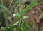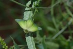 Perennial herb or suffrutex with prostrate, ascending or twining stems up to 80 cm long, growing from a woody rootstock. Leaves lanceolate to linear, 1.5-12 cm long, often hastate-sagittate at the base, mostly hairless, sometimes tinged purplish; margin finely toothed to subentire; petiole 1-25 mm long. Inflorescences usually leaf-opposed racemes, 1-10 cm long with narrowly elliptic-lanceolate bracts subtending each flower, 1.5-2.5 mm long. Flowers unisexual with many male flowers and a female flower at the base of the inflorescences, greenish-cream or yellowish; pedicel of female flower extending to 1-2 cm in fruit. Fruit cross-shaped, 1.5-2 cm across with horned cocci, somewhat roughly pubescent, green. |