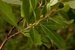 Much-branched shrub, up to c. 4 m. Leaves elliptic-(ob)lanceolate, up to 11 × 4.5 cm, dull green to bluish-green above, paler below, densely hairy on both surfaces, particularly when young; margin entire. Flowers in axillary clusters, yellowish, unisexual on different plants. Fruit round, c. 5 mm in diameter, pale green, pubescent. |