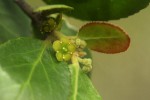 Shrub or small tree. Leaves spirally arranged, ovate, elliptic to obovate, up to 12 cm long, glossy green above, paler below, venation prominent, yellowish, with or without hairs; margin finely dentate. Flowers in terminal heads, yellowish-green, c. 5 mm in diameter. Fruit ovoid, 1-2 cm long, bright red when ripe. |