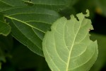 Scrambling or climbing shrub, rarely a small tree, up to 5 m. high; stems grey-green to olive-green and 4-lined when young, becoming reddish-brown and eventually greyish, with numerous whitish lenticels. Leaves oblong to elliptic (rarely obovate), 3·2-11 cm long, dark green or rarely yellowish-green, with 5–7 lateral veins and reticulate venation prominent on both sides; margin obtusely toothed; petiole 5–14 mm long; stipules lanceolate to filiform, c. 1·5 mm long, entire or more or less laciniate, eventually deciduous. Flowers 8–40 in rather lax simple axillary inflorescences; pedicels 1–2·5 mm long. Sepals broadly ovate to semicircular, 0·5–1 mm. long, yellow, veined green, with ciliolate-denticulate margin. Petals ovate-oblong to semicircular, 1–1·5 mm long, with a short claw, pale yellow or greenish-yellow, usually veined green, with ciliolate margin. Disk single, concave, annular or slightly 5-lobed. Stamens 3, with filaments narrow, scarcely broadened towards the base. Mericarps oblong, 5·3–6·1 cm long, flattened, olive-green to brown, 5–8-seeded, shallowly ribbed. |