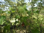 Small shrub up to 3 m. tall; whole plant covered with brown woolly indumentum; leaf lamina 5-12 x 2.5-7 cm., ovate or lanceolate-ovate, sometimes slightly 3-lobed, acute at apex, cordate or subcordate at base, margin irregularly serrate; petiole up to 6 cm. long, stipules c. 7 mm. long, linear-lanceolate, densely pubescent; inflorescences leafy, composed of small cymes crowded at the nodes; peduncles of cymes and pedicels very short, up to 2 mm. long, bracts 3-4 mm. long, linear; sepals 4.5-8.5 mm. long, linear, subapical horn 0.2-0.5 mm. long, densely stellate-pubescent; petals yellow, 4-7 mm. long, linear-oblanceolate, rounded at apex, villous at base; stamens 8-10, filaments 6-7 mm. long; ovary 4-locular, globose; fruit 1-1.5 cm. in diameter including aculei, aculei numerous, covered in simple hairs or almost glabrous and with the terminal seate single, straight or slightly curved. |