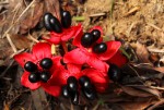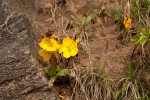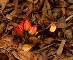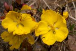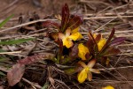 Usually a rhizomatous shrublet with only leaves and flowers appearing above ground, rarely a proper shrub 1-2 m high. Leaves oblanceolate to narrowly obovate, leathery with a stout or swollen petiole; margin serrulate. Flowers yellow to orange, very short-lived. Calyx spreading, bright red. Carpels 5. |