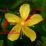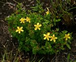 Tufted perennial herb with unbranched stems, usually less than c. 20 cm long. Leaves opposite, sessile, ovate, oblong or almost round, up to 25 × 15 mm, with prominent translucent gland dots; apex obtuse or rounded; margin entire but often rolled under. Flowers c. 2.5 cm in diameter, in terminal clusters, rarely solitary; sepals lanceolate, acuminate, subequal, with translucent and dark glad dots; petals yellow, often tinged with red with dark gland dots scattered on margins and lamina; stamens numerous; styles usually 3, rarely 4 and ovary 3-locular. Fruit a capsule, erect. |