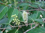 Tree, to 20 m with a straight erect trunk; branchlets lenticellate. Leaves ovate to broadly elliptic; apex long-acuminate; margin crenate-dentate; petiole reddish. Flowers in dense, ± erect, cylindric, axillary racemes. Stamens in fascicles alternating with the sepals. Petals 0. Fruit a spherical capsule. Seeds with long white cottony hairs. |