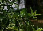 Medium-sized spreading tree, sometimes multi-stemmed and branching low down. Bark pale grey, smooth, flaking and mottled in older specimens. Leaves, sub-opposite, whorled or sometimes alternate, elliptic, up to 10 × 4 cm, usually about 5 × 2 cm, yellowish-green when young, medium-green above and hairless when older, yellowish-green and finely velvety below; margin entire, often finely hair-fringed. Flowers in dense almost spherical axillary heads, up to 2 × 1.5 cm, cream to pale yellow. Fruit 4-winged, 1-1.5 cm long, normally with a well-developed apical peg, shiny pale green when young, golden-brown when ripe. |