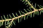 A shrub or tree up to 6 m tall. Branchlets densely pubescencent and usually with sparser longer glandular hairs. Leaves in whorls of 4, narrowly ovate, mostly up to 5 mm long, pubescent above; margin reflexed; petioles 0·5–0·7 mm long, pubescent. Flowers in terminal clusters of 4–12. Pedicels 1–2 mm long, pubescent. Calyx bowl–shaped, shortly pubescent; margin glandular or fimbriate; 3 lobes broadly triangular, about equalling the sinuses of the corolla, fused for 2/3 of their length; 4th lobe somewhat longer, almost equalling to slightly exceeding the corolla. Corolla bowl–shaped, pubescent outside, 1·1–1·8 mm long and 1·5–2·5 mm wide, pale green, often tinged reddish. Stamens usually 8 but from 5 to 9 in some flowers, slightly exceeding the corolla; style short, 0·1–0·3 mm, exceeded by the stamens until the capsule begins to ripen. |