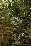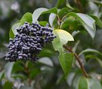Evergreen shrub or small tree, introduced as an ornamental hedge. Leaves dark, glossy green, oblong. Flowers in large terminal panicles, white, heavily scented. Fruits in large clusters of shiny black berries.