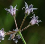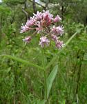 Erect perennial herb, growing from a carrot-shaped tuberous rootstock. Stems usually single, milky sap present. Leaves opposite, linear-oblong to lanceolate, up to 20 cm long, sparsely hairy on both surfaces; base slightly cordate. Flowers in terminal or extra-axillary 3-10-flowered subspherical umbels. Corolla 5-lobed nearly to the base, mauve, sparsely hairy outside, hairless inside. Corona lobes arising from the base of the staminal column, basal part clawed with 3 teeth; upper part flat and petal-like, mostly larger than the corolla lobes Fruit in 2 erect follicles, narrowly spindle-shaped, smooth, pubescent. |